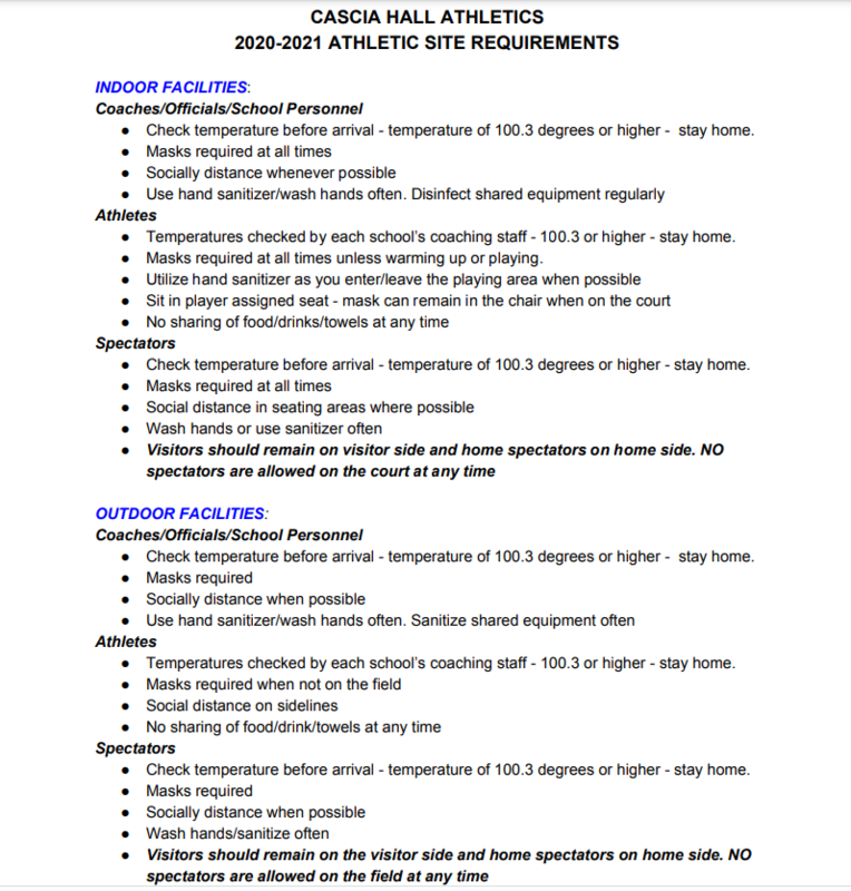 Athletic COVID Procedures